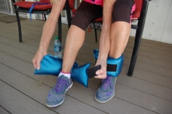 With AquaBells Mini Ankle Weights you can also maintain your lower body workout regimen while on the road! These fully collapsible Ankle Weights, unfilled weigh less than 8 ounces, and are small enough to fit into a fanny pack. Filled with water they provide up to 4 pounds of resistance per pair. Simply fill the two ankle weights to your desired weight resistance and attach with the comfortable Velcro straps. Great for physical therapy, and also can be used for water resistance programs when in swimming pools, too!